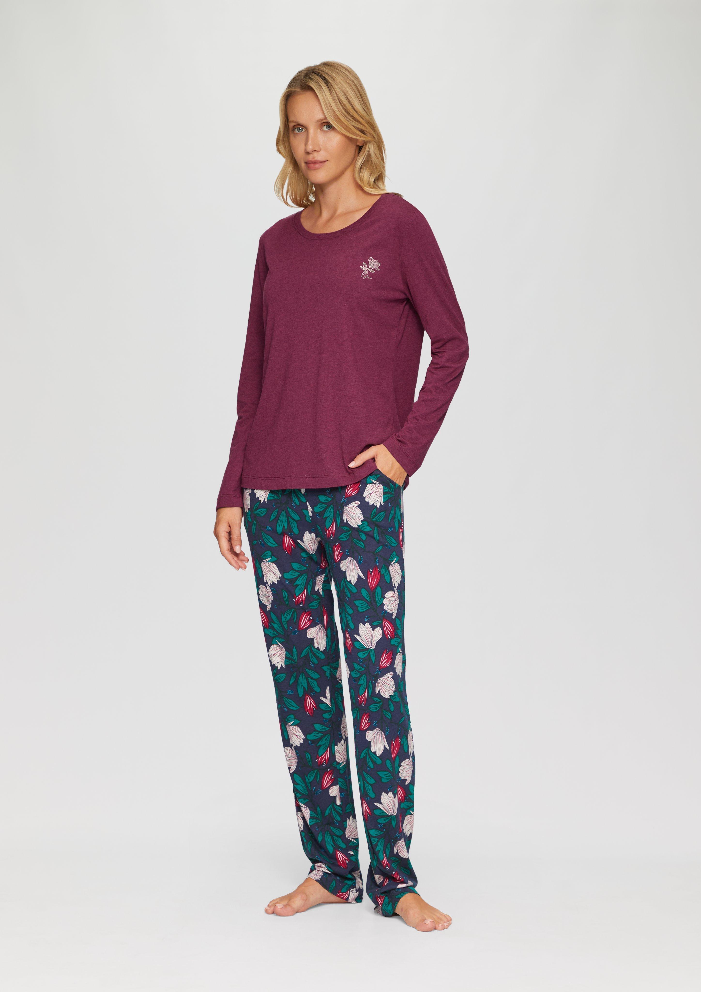 Gezellige pyjamatop van zachte jersey die je vergezelt tijdens ontspannen avonden met zijn gevlekte look en delicate bloemenborduursel. De comfortabele ronde hals en lange mouwen zorgen voor een comfortabele pasvorm.
